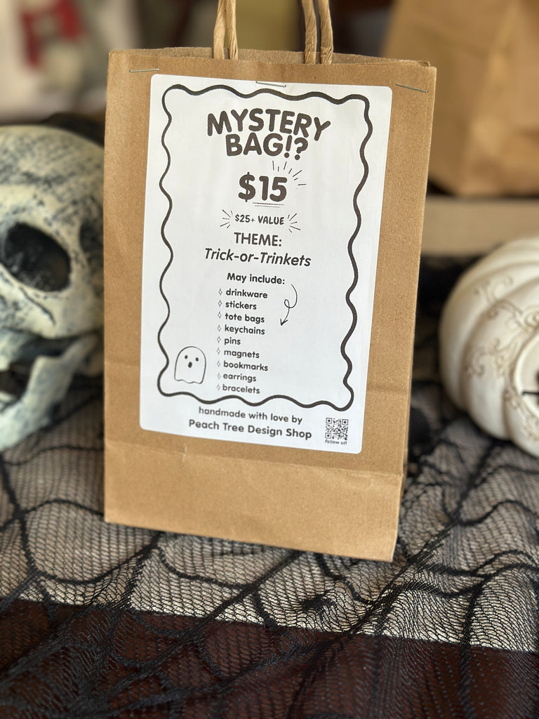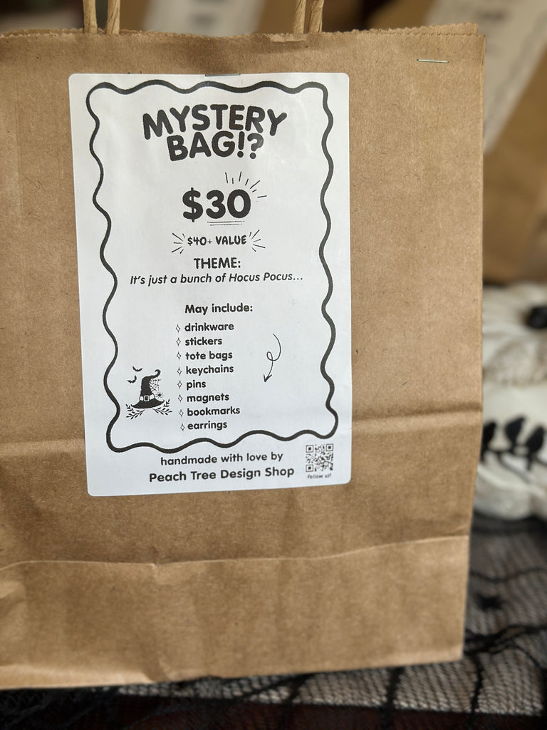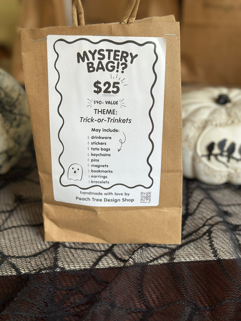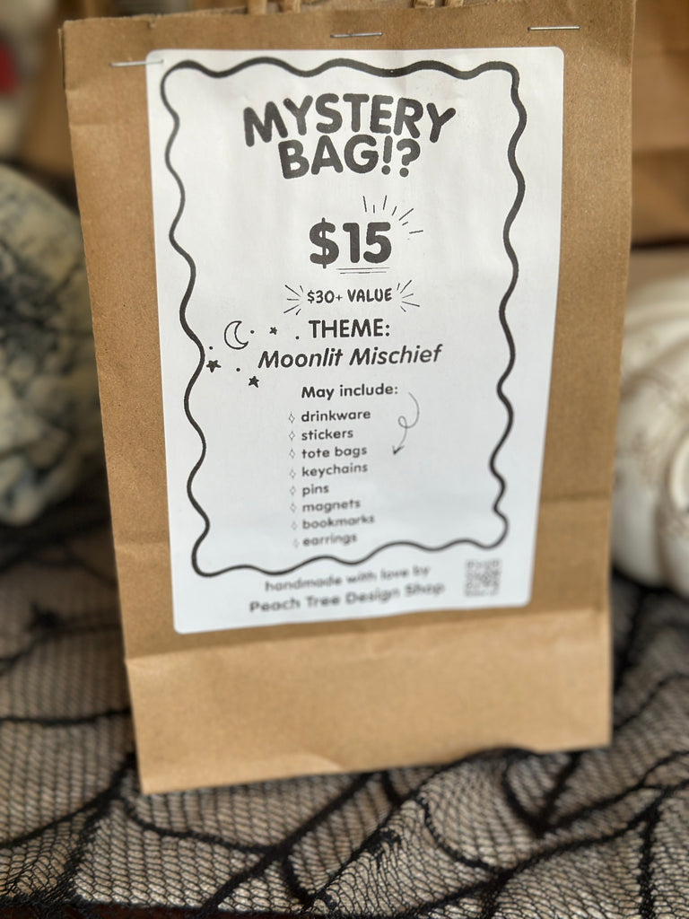 Handmade mystery bags filled with spooky, cozy, and chaotic surprises. Each one includes unique art, witchy decor, and collectible gifts for anyone who loves something unexpected.
