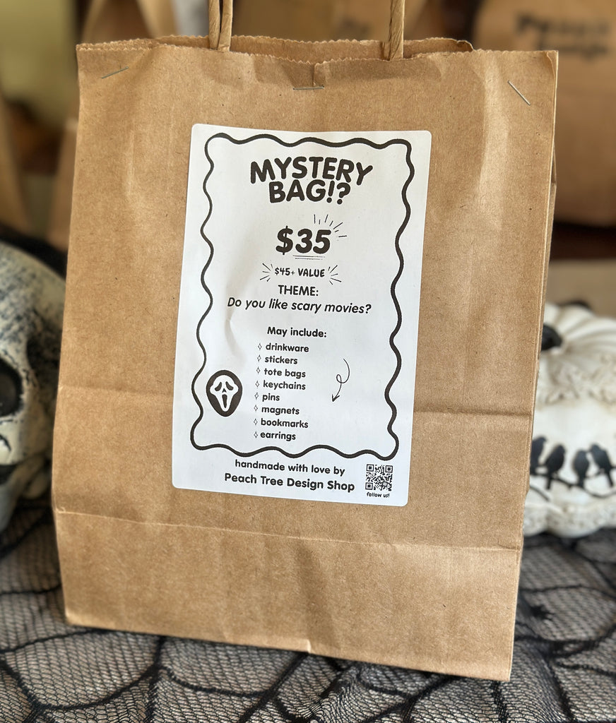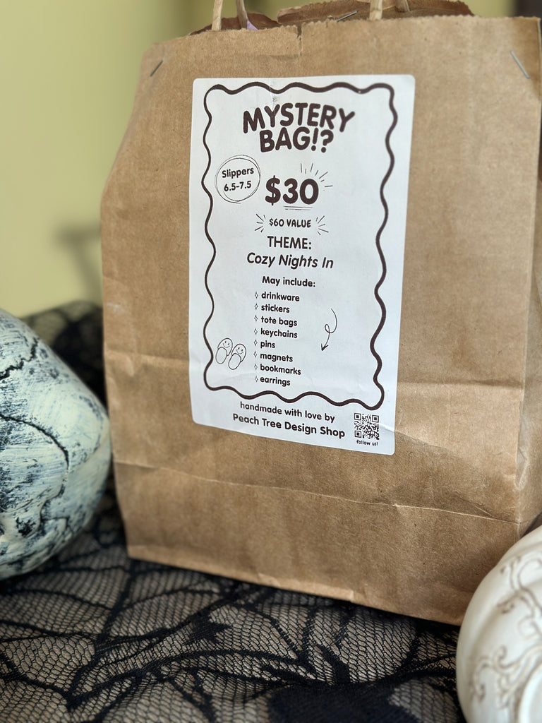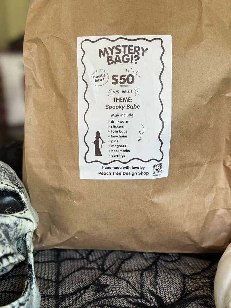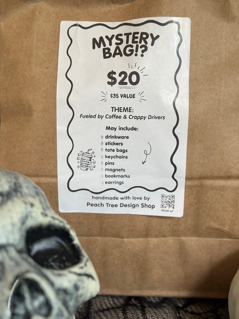 Handmade mystery bags filled with spooky, cozy, and chaotic surprises. Each one includes unique art, witchy decor, and collectible gifts for anyone who loves something unexpected.