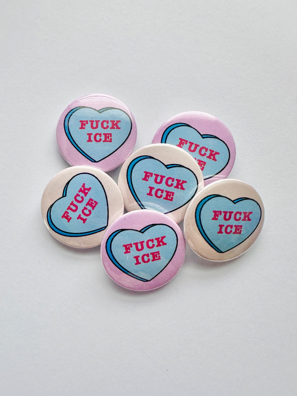 Inspired by my original Fuck Ice Candy Heart Design, this is a handmade button pin is perfectly sized to subtly wear your views on humanity.