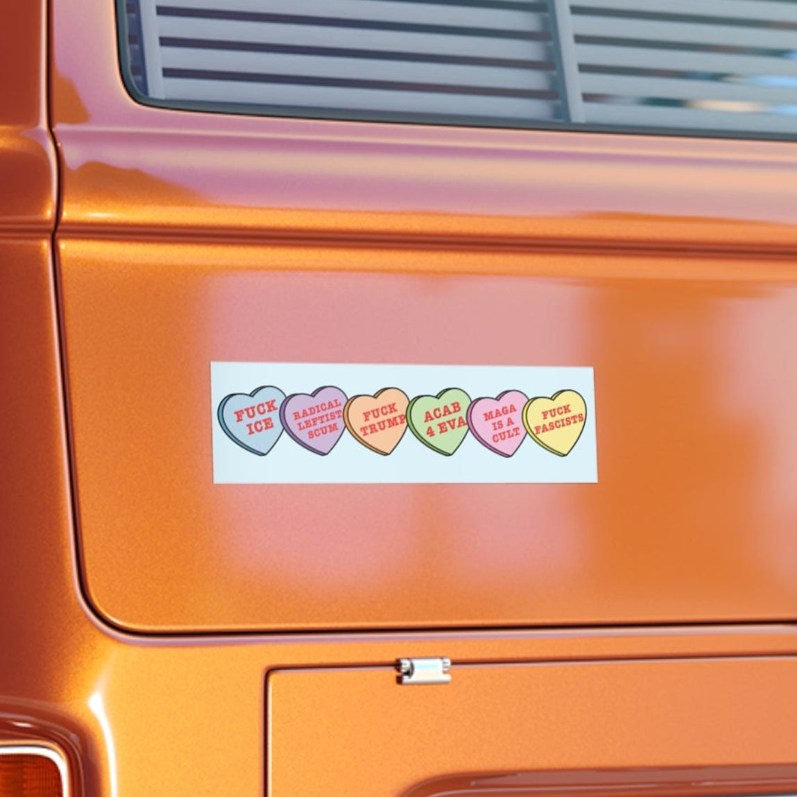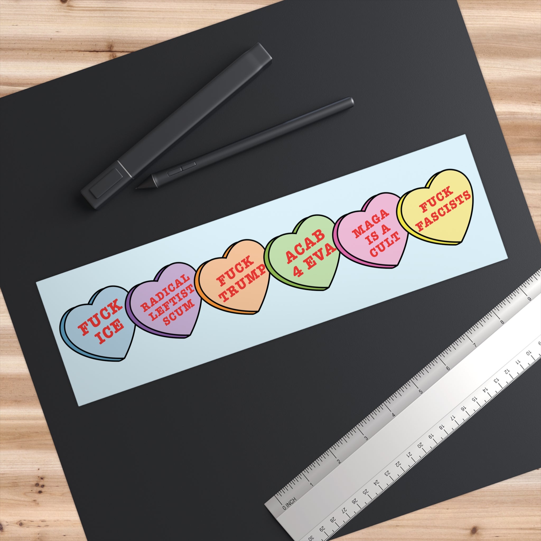 Antifa Candy Hearts Bumper Sticker, Leftist Protest Bumper sticker